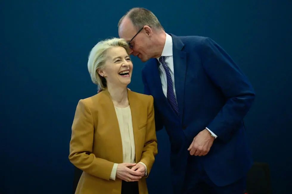 在中国舆论场,对于欧盟倾向滑跪,往往归咎于亲美的冯德莱恩。大致上,这个看法并没错,不过,严格说来,欧盟执委会主席并不是坐在谈判桌另一端的“君主”,而更像一个掮客,任务是收集欧盟成员的出价,再向美国喊价。因此,我不认为冯德莱恩是决定性的角色,其身后的德、法两国才是正主。
