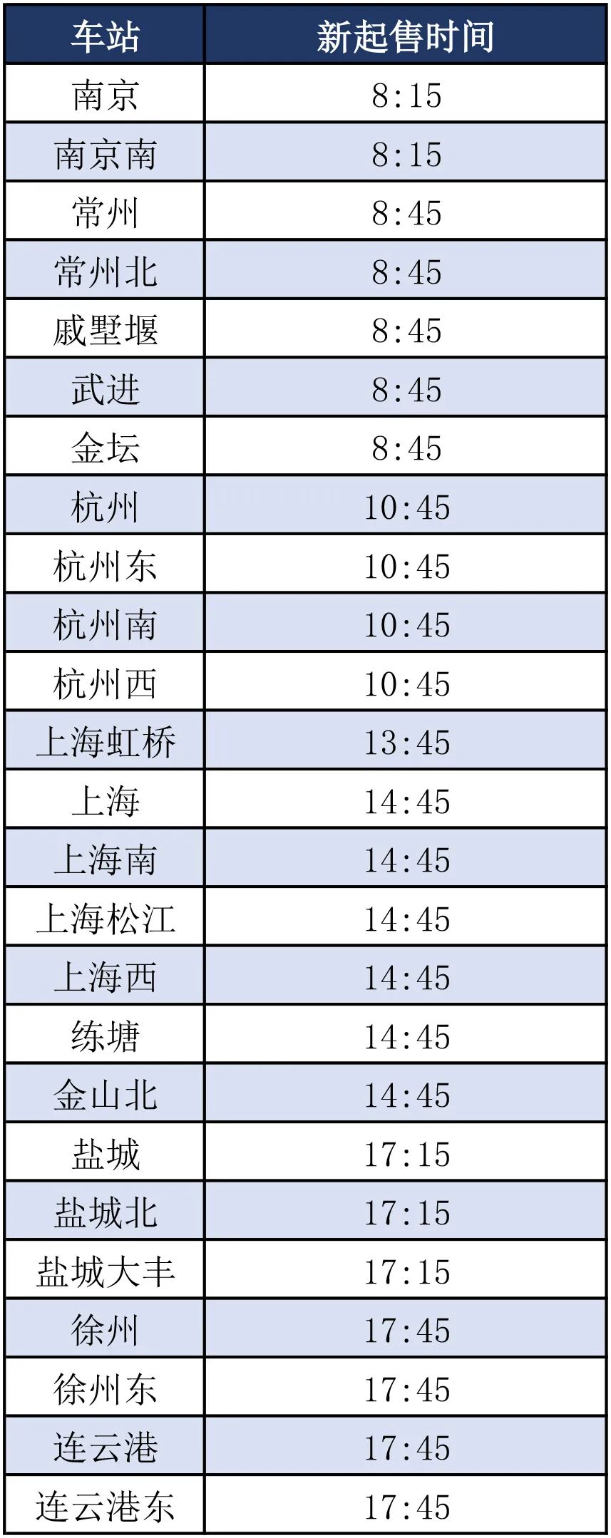 6月7日零时起,铁路部门对南京、南昌、广州南、上海虹桥、石家庄、济南等99个车站的车票起售时间点进行优化调整,起售时间间隔由30分钟调整为15分钟,起售时间点由21个增至41个,车票起售时间点仍为每日8时至18时,上述车站具体车次对应的起售时间点可通过铁路12306网站、客户端和车站公告等渠道查询,请旅客朋友及时关注起售时间点变化情况,以便安排购票事宜。其他车站的车票起售时间点不变。