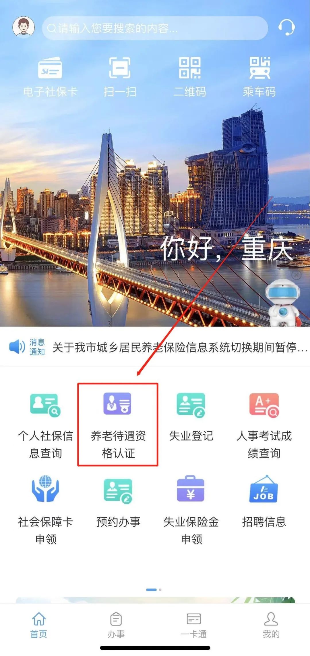 如果您忘记自己是否已在规定时间内进行过养老待遇领取资格认证,可通过“重庆人社”APP,查询您的认证信息。