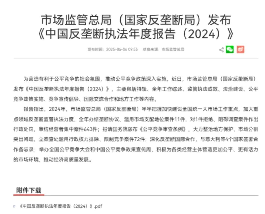 《中国反垄断执法年度报告》发布,阿里、美团、知网等督导案例在列