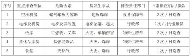 (1)为便于基层人员排查并判定隐患,可编制重点部位事故隐患排查表。