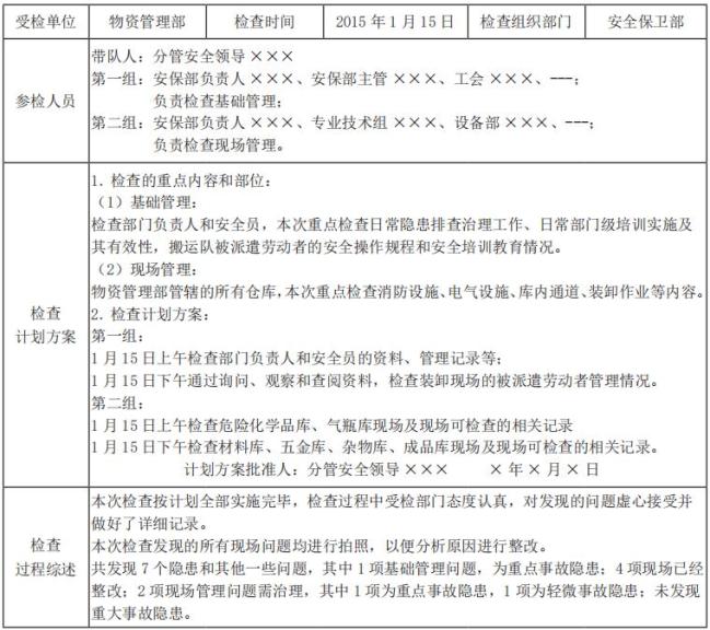 示例:安全检查记录表(格式)
