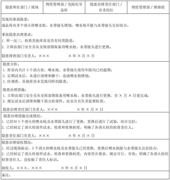 (3)公示内容:包括事故隐患所在部门 / 部位、治理责任部门和治理完成情况等。