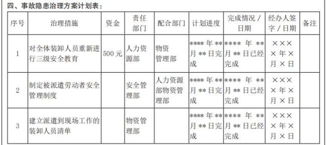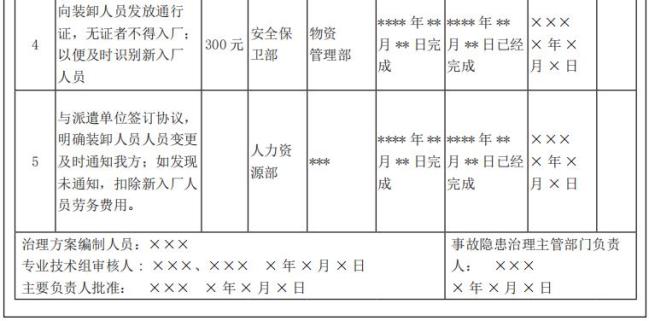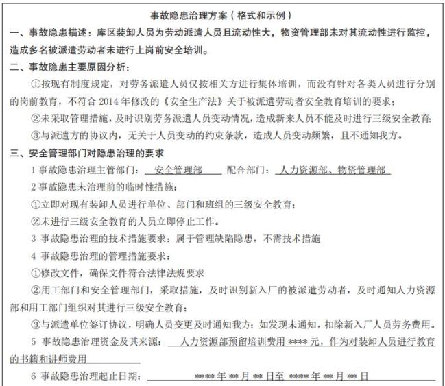 示例:事故隐患治理方案(格式)2. 在事故隐患治理过程中,应当采取相应的监控防范措施,必要时应当派人值守。