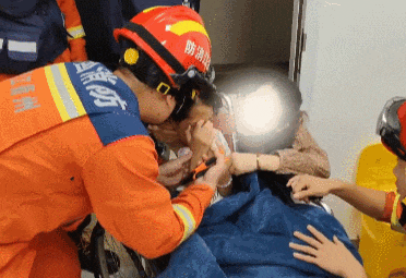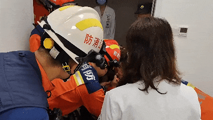 随后消防救援人员将其交给医护人员进行救治