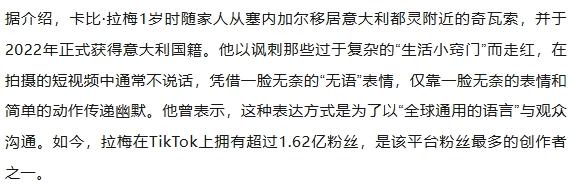 拉梅通过发布幽默短视频获得大量粉丝 图源:外媒来源 中国新闻社 环球时报 杭州日报 编辑 蔡海燕 责编 邹渝 审核 周尚斗
