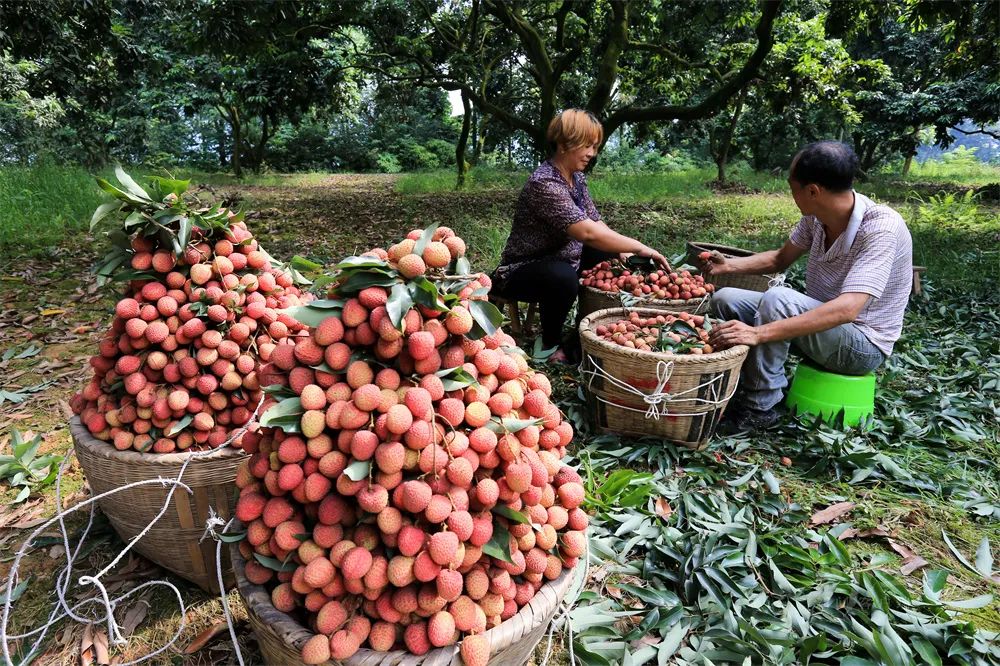 合江荔枝。早在2015年,合江荔枝面积就已达到30.6万亩。目前,荔枝投产面积已超70%。2024年,合江荔枝产量约5000万公斤,产值25亿元以上,出口约100吨。在冷链技术的加持下,越来越多的电商平台已加入合江荔枝销售的队伍中,数以万计荔枝从枝头走到链上,走出四川、走向世界,合江荔枝也成为当地助力群众增收致富、推进乡村全面振兴的特色产业。