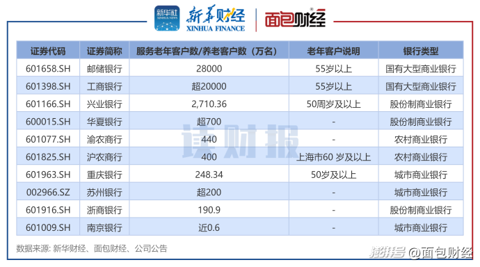 除此之外,股份制银行中,兴业银行服务50周岁及以上客户2710.36万户,华夏银行服务老年客群超700万户。农商行中,渝农商行养老客户超440万户,沪农商行服务上海市60岁及以上老年客户超400万人。