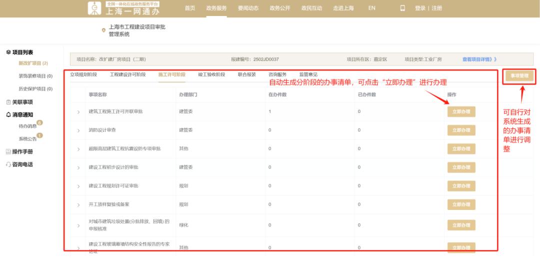 【提示】上海市工程建设项目审批管理系统企业办事页面全新升级上线!