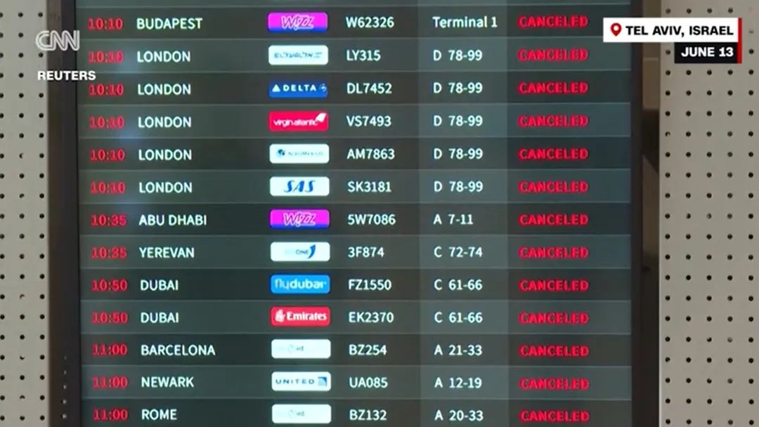 据《以色列时报》,位于以特拉维夫的本-古里安国际机场13日已经宣布暂时关闭,以斯雷航空(Israir)、以色列航空(El Al)和阿基亚航空(Arkia)等以色列航司宣布正在疏散并转移机场的飞机。阿联酋航空取消了13日、14日飞往伊拉克、约旦、黎巴嫩和伊朗的航班。