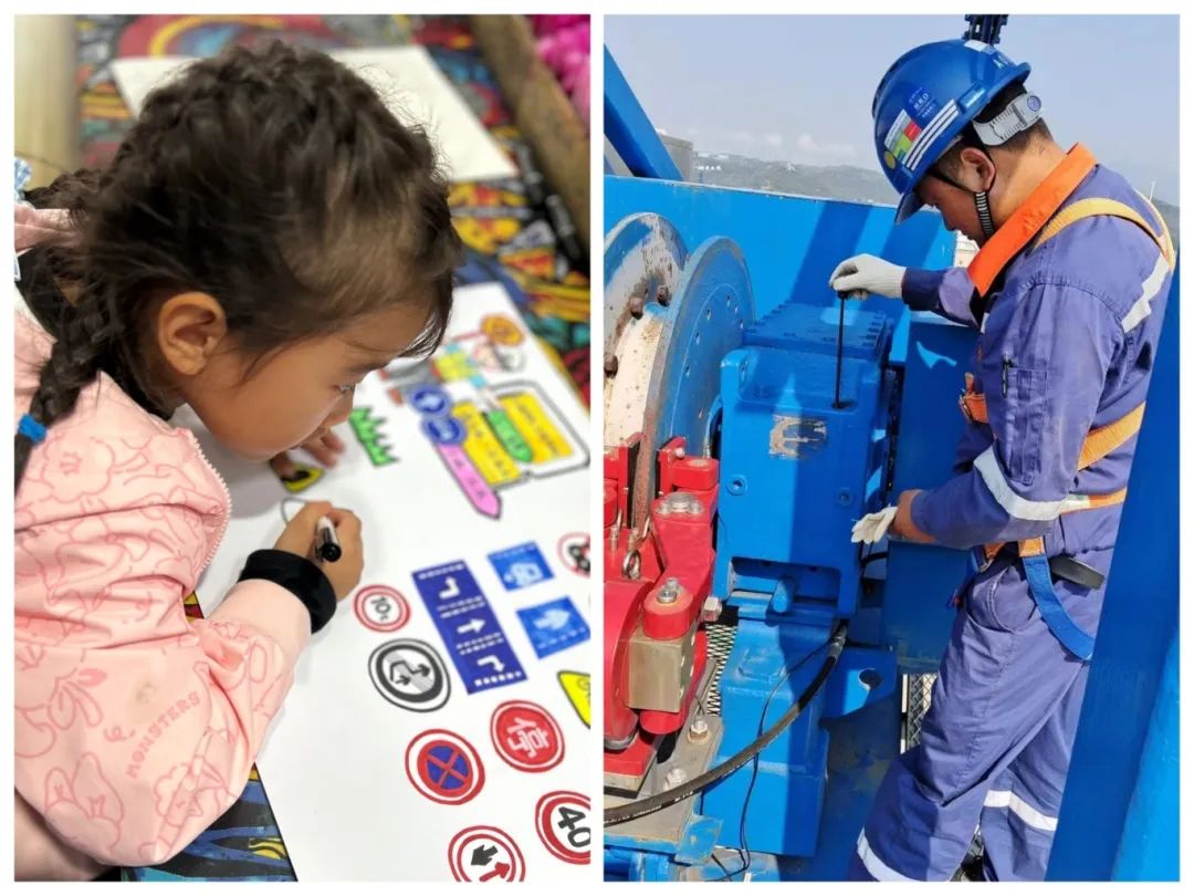 我的爸爸是副队长,他的“秘密基地”在几十米高的塔吊上,像“蜘蛛侠”一样爬上爬下。去年他带着团队安拆了30多台次塔吊,一次差错都没有,连台风天也去守护设备。我搭积木塔吊总歪歪扭扭的,爸爸说一定要像螺丝钉一样稳当。我常把他教我的警示标识画在纸上,看着爸爸站在塔吊顶端指挥的样子,真是太酷啦!