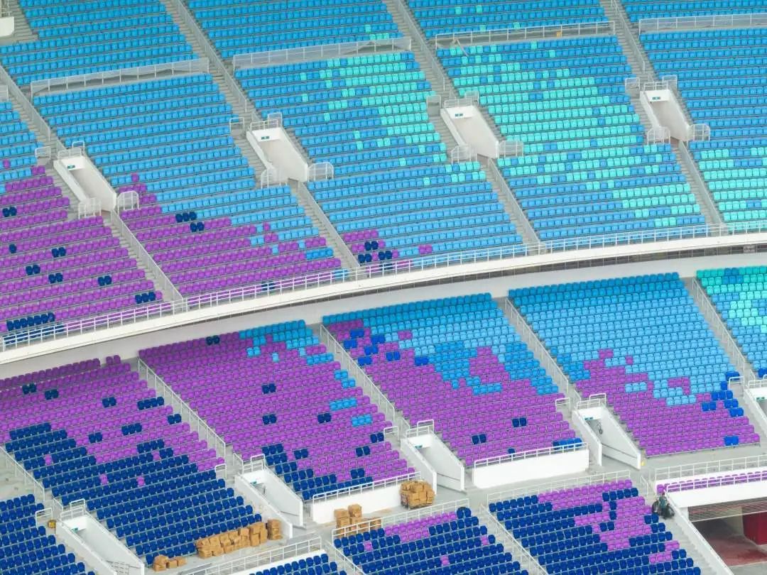 ✨ 亮点二:此次改造保留了场馆整体屋架的钢结构,将屋面、下吊板等材料更换成新型材料,用新材料、新技术为旧场馆打造出新场景。