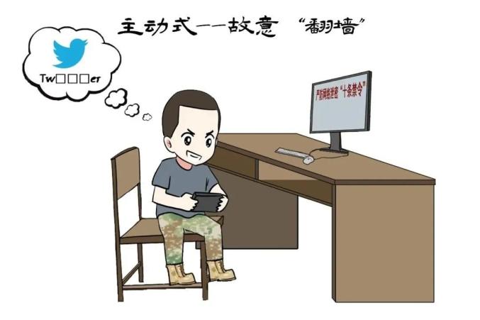 ♦违规“翻墙”登录境外网站,“搬运”有政治问题的信息入境“倒灌”的,依照《中国共产党纪律处分条例》第四十五条、第四十六条、第四十七条和《中国人民解放军纪律条令(试行)》第一百一十四条、第一百一十五条的规定处理。