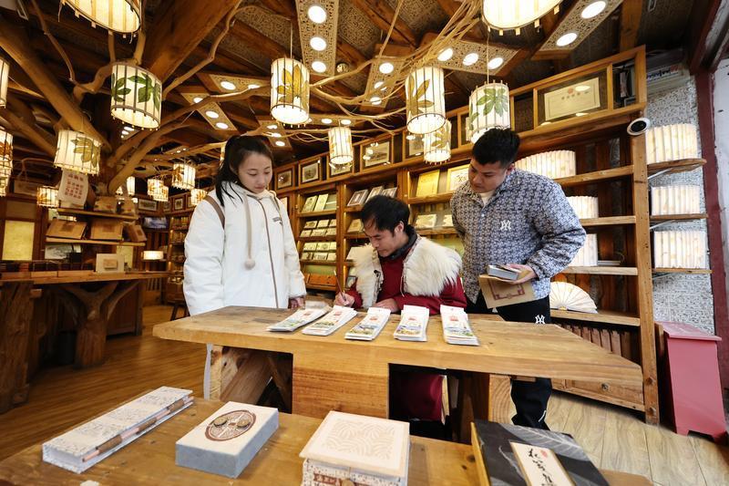 丽江古城东巴文化受游客喜爱。陈飞 摄丽江玉龙雪山印象旅游文化产业有限公司副总经理司世明介绍,演员来自纳西、藏、彝等13个民族,均为附近村民。有500个农村家庭在公司工作,月均收入5000余元。他们走出山村,获得稳定就业和收入,幸福感满溢,更因向全世界游客展示民族文化而充满自信。