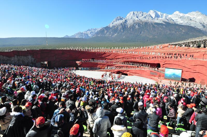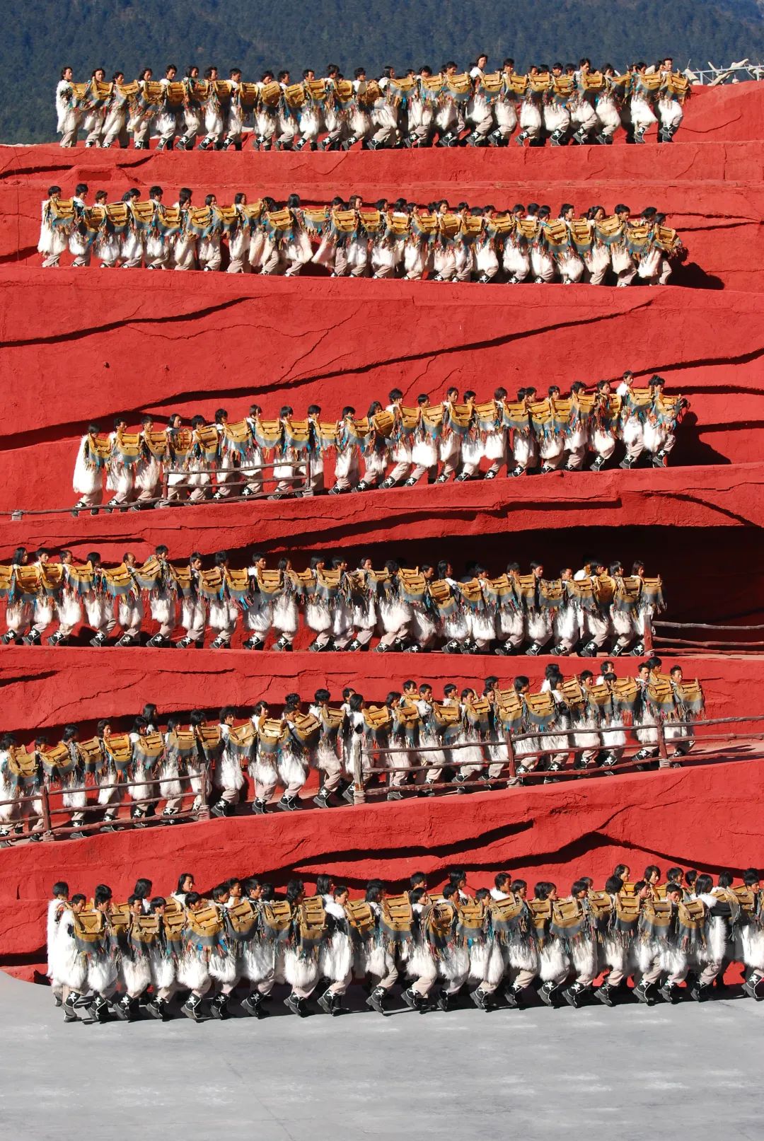 海拔3050米上、玉龙雪山下,马帮汉子弓身跃出,羊皮褂下脊背起伏如怒江波涛,马蹄声由近及远,似千军万马奔涌而来……东巴文化、茶马古道、纳西民俗轮番登场。
