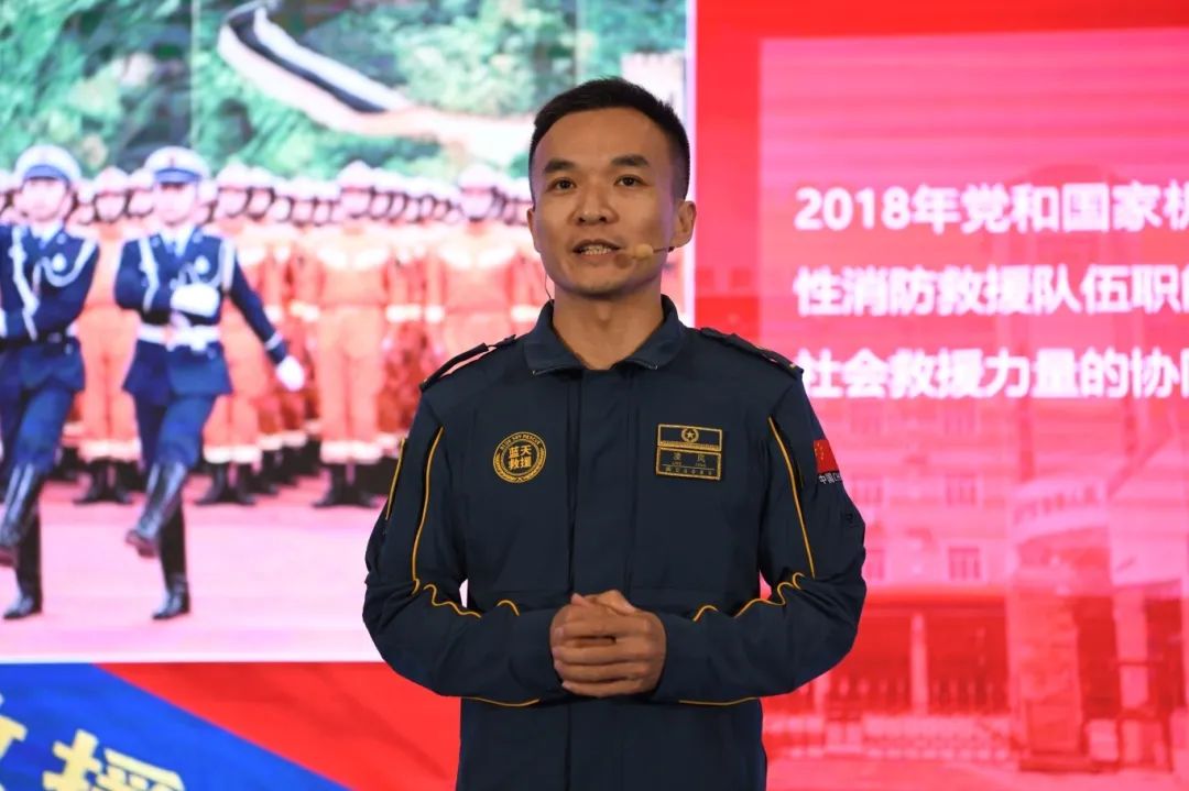 泉州市社会应急救援联勤中心代表刘晓琦介绍了团队通过“救援+宣传”双驱模式整合社会应急救援力量高效协同参与消防工作的创新做法。