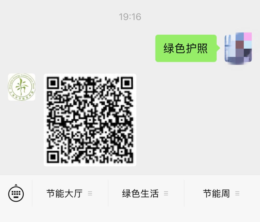 二是关注“上海节能宣传”官方公众号,回复“绿色护照”,扫描二维码进入申请页面,可点击选择“申请绿色护照”。
