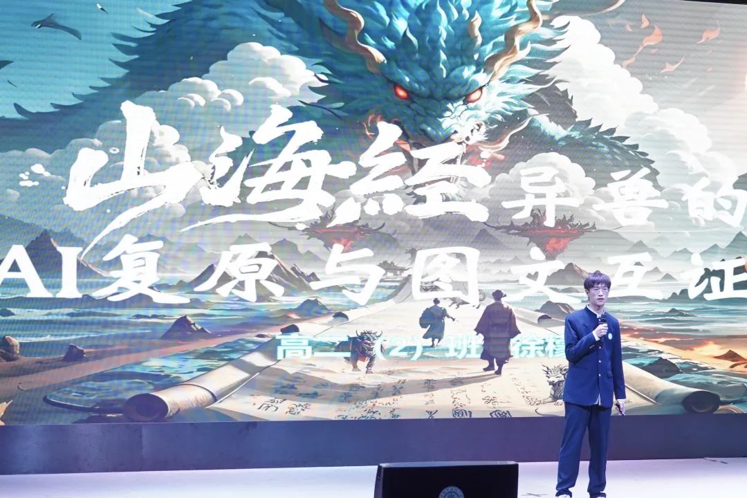 据了解,学校校本课程158门,科学课程占45%。学校不仅注重知识输入,同样鼓励学生通过论坛等多元形式输出研究成果。截至目前,“嘉懿科学论坛”已成功举办两届,用AI复刻《山海经》中的奇珍异兽形象、利用大语言模型探究普通话—嘉定话的人工智能翻译等科学创新备受关注。