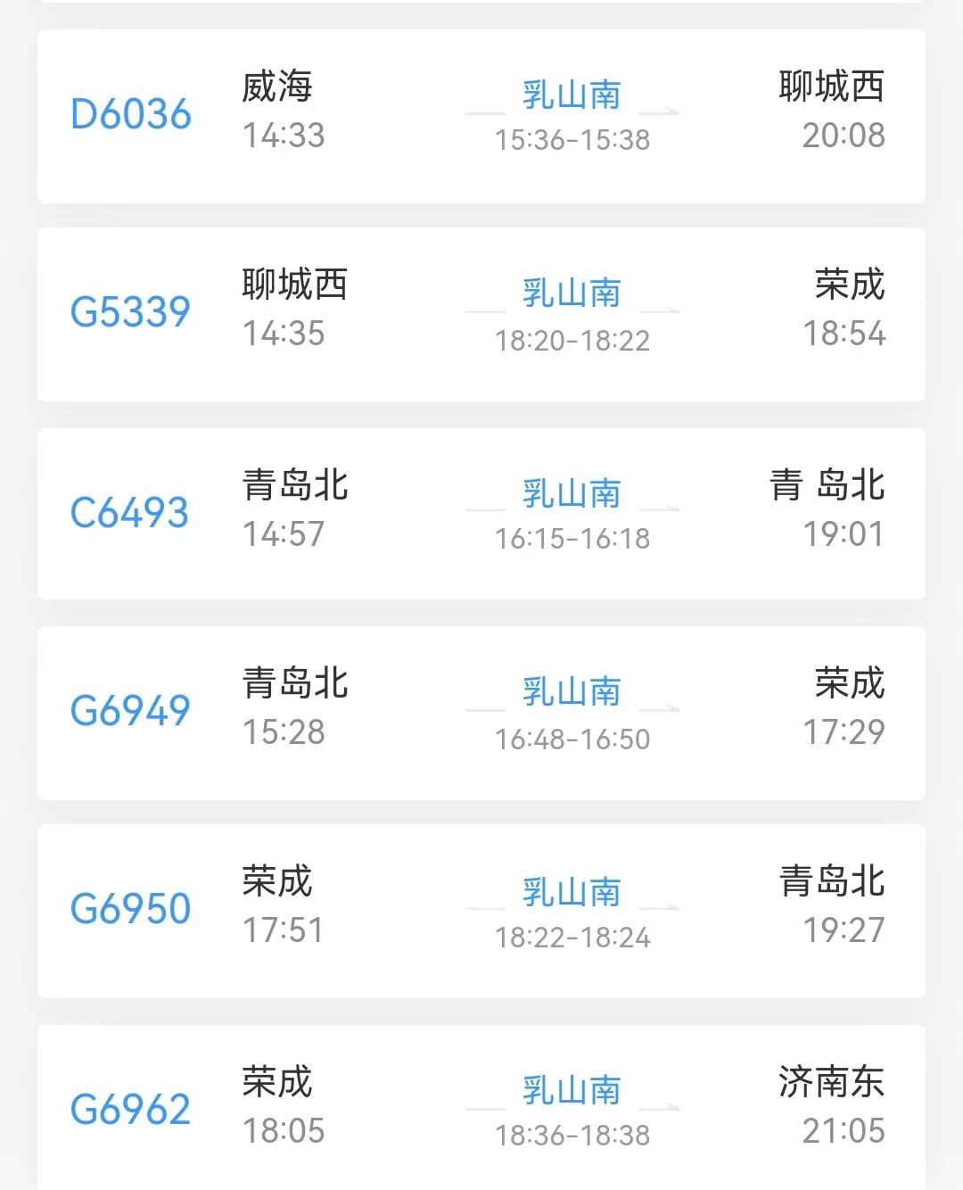 7月1日起,高铁乳山南站车次增至14个,可直达威海