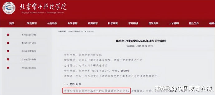 北京电子科技学院2025年本科招生章程指出,招生对象明确指出:考生应为符合高考报名条件的应届普通高中毕业生,身体健康,未婚,年龄不超过20周岁(2005年9月1日以后出生)。
