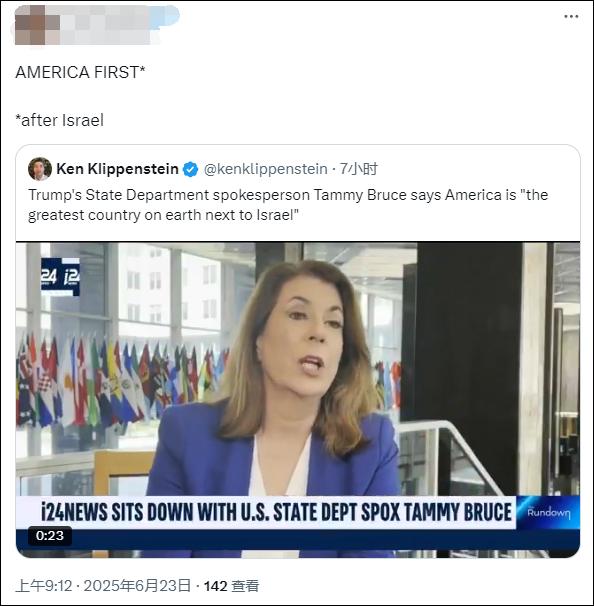 来源|观察者网原标题:《"美国最伟大,仅次于以色列"……美发言人被网民冲了》