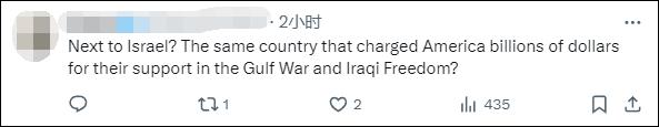 “仅次于以色列?就是那个向美国收取数十亿美元以支持海湾战争和‘伊拉克自由’的国家?”