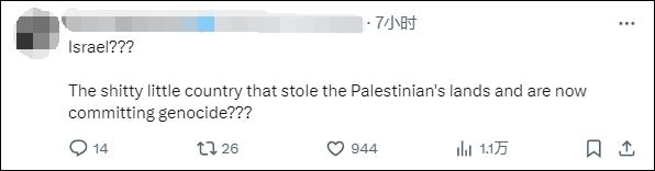 “以色列?这个卑鄙的小国家偷走了巴勒斯坦人的土地,现在正在进行种族灭绝???”