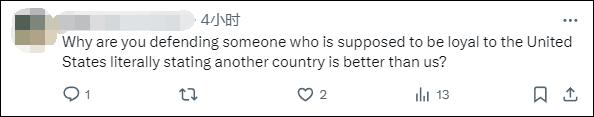 不过,这一评论随即引来另一人回复:“你为什么要为一个本应忠于美国的人辩护,说另一个国家比我们好?”