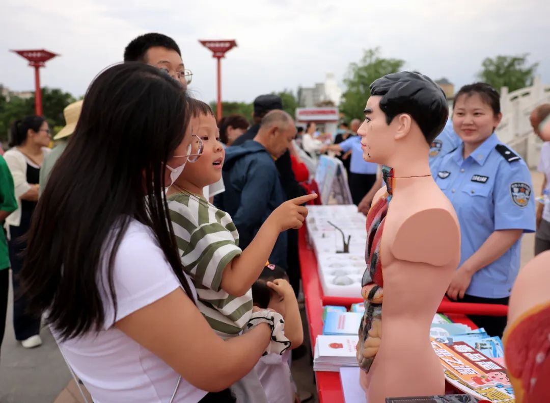 活动中,发布了防范青少年药物滥用短视频作品,这些作品生动形象地向青少年传递了“健康人生、绿色无毒”的理念。为搭建知识传承桥梁,鄂托克前旗公安局通过吸毒前后人体器官对比模型,直观地向在场群众展示吸毒危害,向青少年讲解吸食毒品后对自身、家庭、社会带来的影响。并结合禁种铲毒工作,重点对毒品原植物罂粟的辨识方法进行讲解,让现场群众更加直观地认识到毒品的危害,掌握如何发现和举报非法种植罂粟的方法。