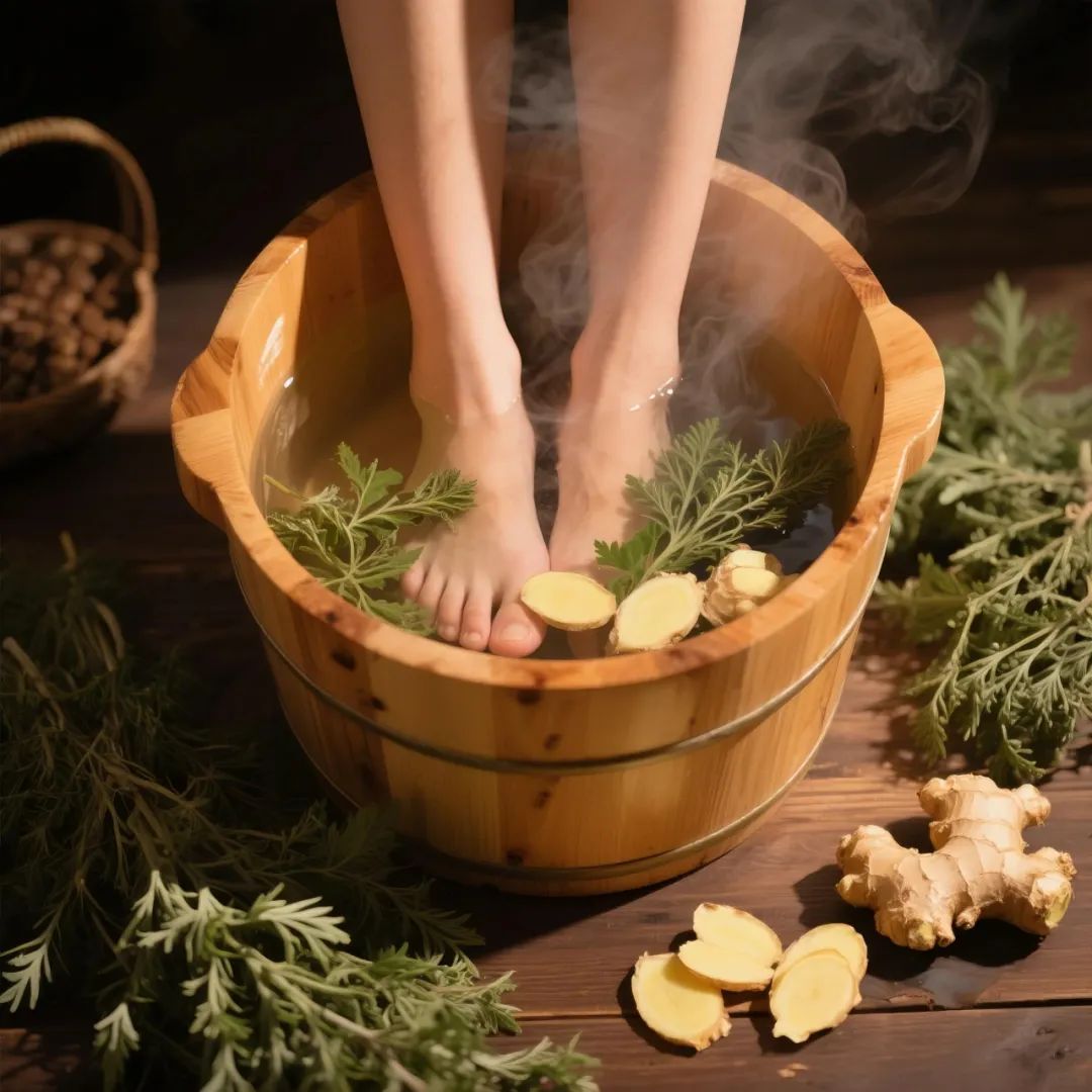 泡脚从足部开始温暖全身,微微出汗,能够将下焦的寒湿排出体外。