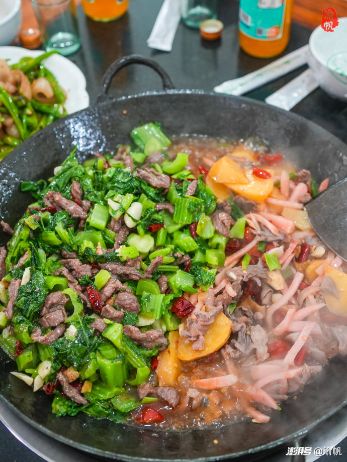 黔江不仅有令人陶醉的美景,更有让人垂涎三尺的美食。青菜牛肉用辣椒与嫩叶谱写荤素二重奏,渣海椒裹着玉米香在舌尖跳起摆手舞,地牯牛脆生生咬出山野的清甜,米豆腐裹着油辣子滑入喉间,酸渣肉在时光里发酵出陈年的醇厚。但若论起黔江美食的灵魂,必是那锅咕嘟冒泡的鸡杂——酸辣鲜香中藏着武陵山民的生存智慧,更承载着市级非遗的厚重荣光。
