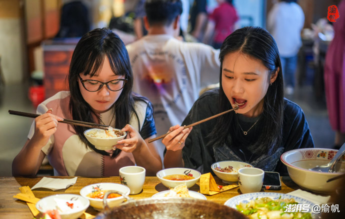 从选料到上桌,黔江鸡杂恪守着“现宰现烹”的铁律。鸡杂需用小苏打反复搓洗去腥,泡菜要切出棱角分明的形状,火候掌握全凭老师傅腕间的力道。当最后一把蒜苗撒入锅中,这锅沸腾的江湖便成了黔江人写给世界的情书——酸辣是生活的底色,脆嫩是时光的馈赠,而那股挥之不去的烟火气,正是武陵山民最滚烫的生存诗篇。一锅鸡杂,半城烟火,尝尽黔江山水;两筷翻搅,百味人生,不过热辣相逢。