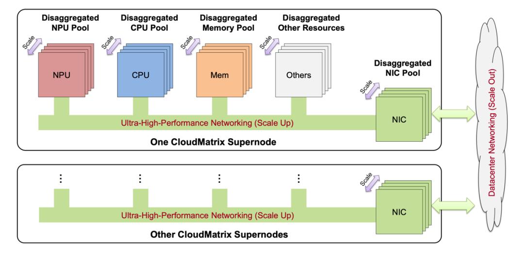 面向未来,华为论文中也给出了两条发展路径——一方面继续扩大节点规模,另一方面进行更强力的解耦。