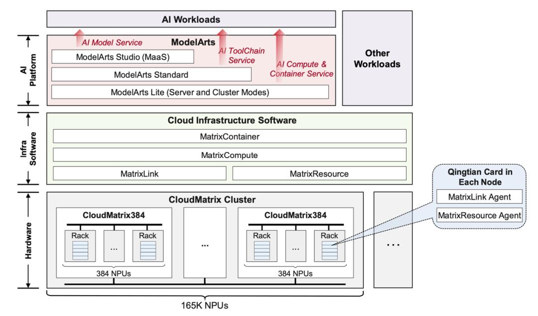 以CloudMatrix(首个生产级实现CloudMatrix384)为代表的华为云下一代AI数据中心架构。