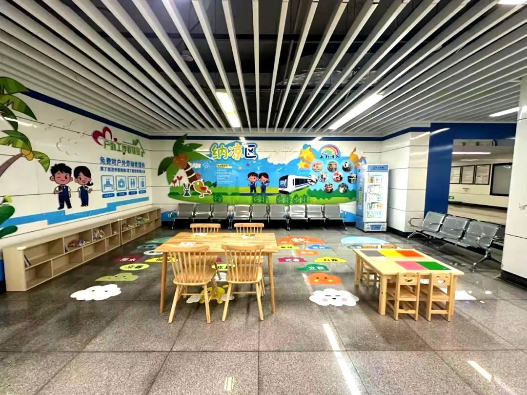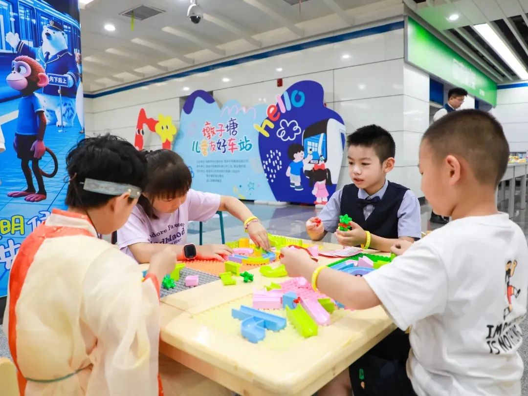此外,在2号线翠苑路站的纳凉区,车站设置了儿童及家庭互动区域,通过设置儿童活动设施,摆放趣味卡通读物,绘制交通安全插画,铺设儿童防撞地垫,让孩子们在清凉的地铁车站体验丰富童趣。在3号线墩子塘站,地铁以“一米高度看城市”为核心理念,通过闸机通道、阅读空间、主题装饰等六大特色场景建设,为儿童提供更温馨、便利的地铁出行体验。