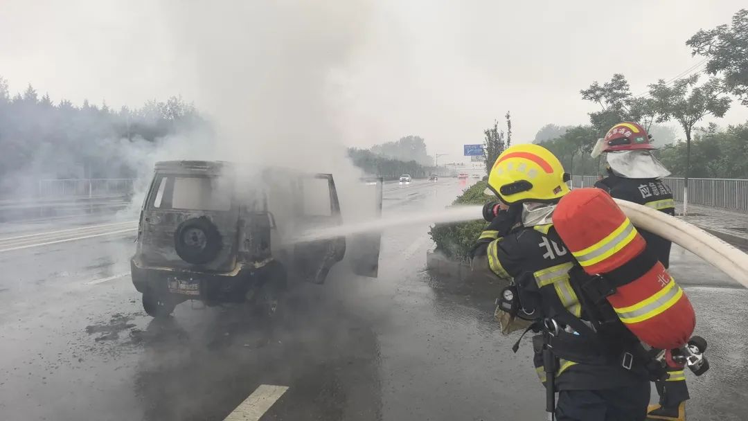 消防员对车辆底部喷水降温“这块电池没有生产厂家、没有质量认证、没有安全标识,内部线路杂乱无章,电芯材质低劣。在反复充电、长时间行驶震动下,最终因短路引发自燃。”怀柔区消防救援支队法社科副科长王建超分析。