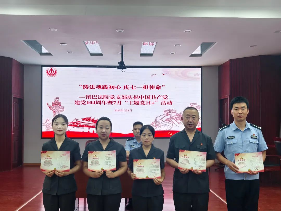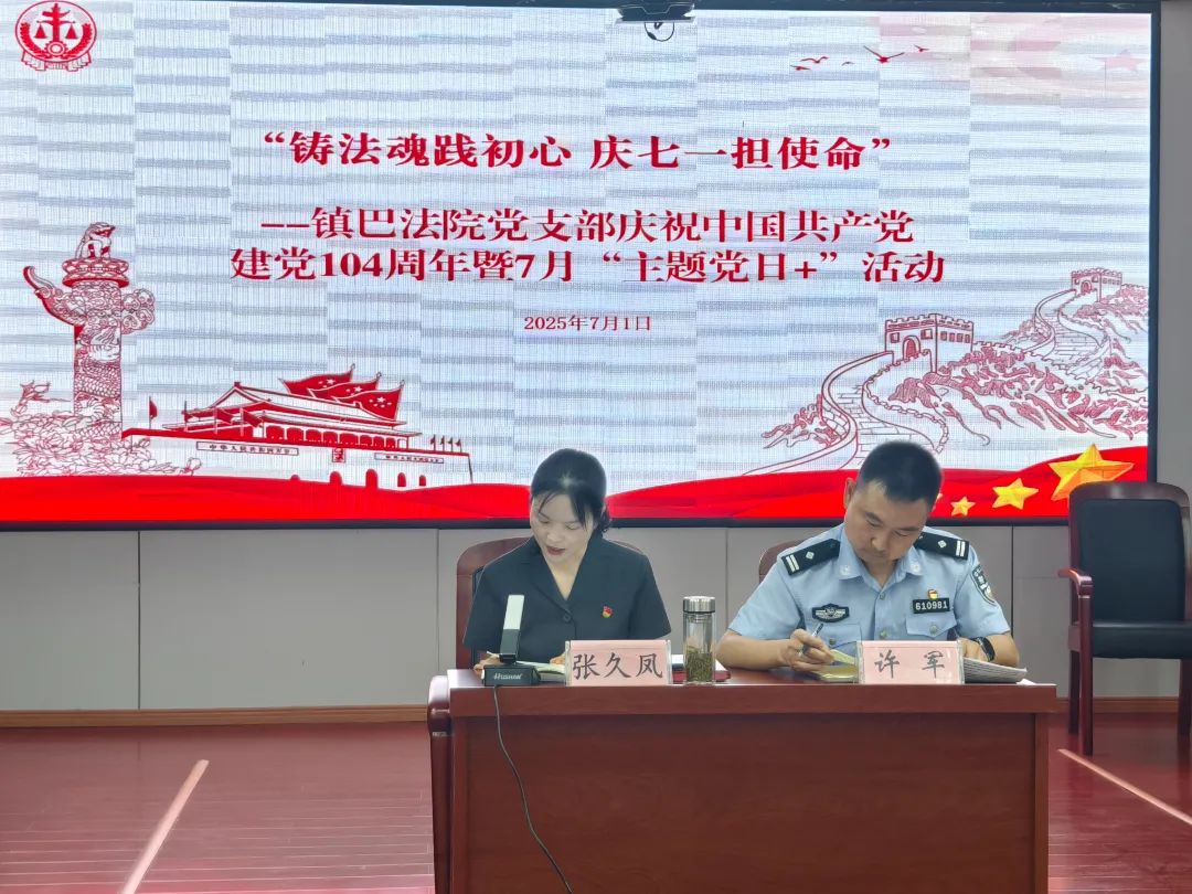 2025年是中国共产党成立104周年,为回顾党的光辉历程,弘扬党的优良传统,增强法院干警的党性修养和责任感,7月1日上午,镇巴法院党支部开展庆祝中国共产党建党104周年暨7月“主题党日+”活动,向党的生日献礼。活动由党组成员、政治部主任、党支部书记张久凤主持,全体党员参加。本次活动的主题是“铸法魂践初心 庆七一担使命”。活动伊始,集中学习了《习近平关于加强党的作风建设论述摘编》第七、八、九专题以及《党章》部分内容。