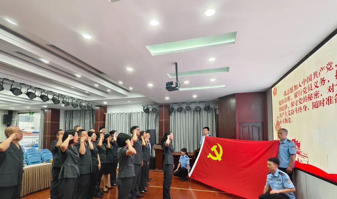 “我宣誓,我志愿加入中国共产党,拥护党的纲领,遵守党的章程,履行党员义务,执行党的决定,严守党的纪律,保守党的秘密,对党忠诚,积极工作,为共产主义奋斗终身,随时准备为党和人民牺牲一切,永不叛党。”重温入党誓词环节,全体党员干警举起右手,再次许下了庄严承诺。