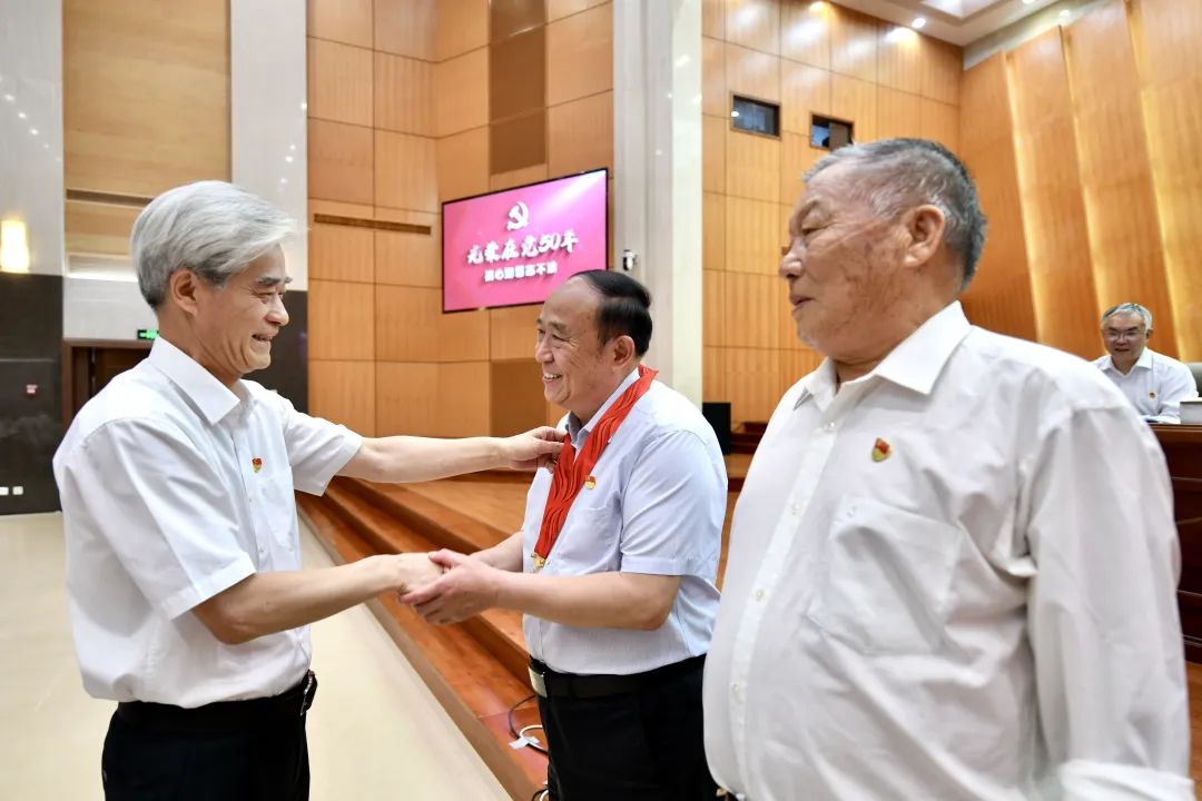 会上,省高院院领导为吴政所等5名省高院离退休老干部颁发“光荣在党50年”纪念章。省高院党组成员、副院长、政治部主任郑平等7名领导干部,围绕“深入学习贯彻中央八项规定精神,加强作风建设,忠诚履职担当,推动全省法院高质量发展”主题作了交流发言。
