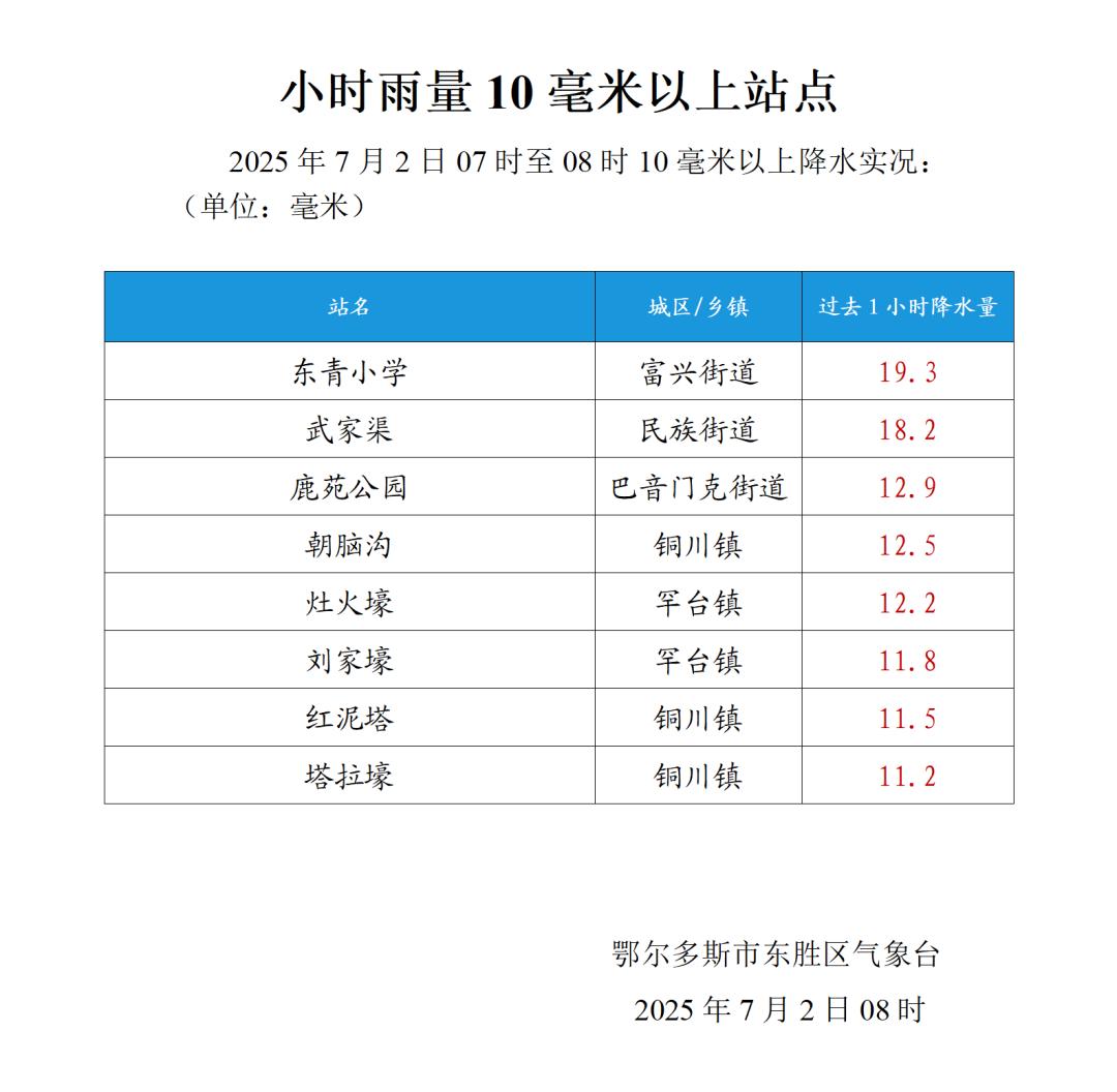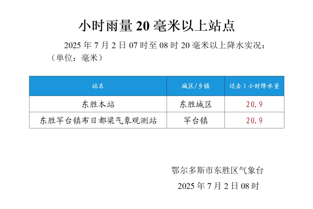 (东胜区气象台)原标题:《东胜发布暴雨预警!降水实况→》