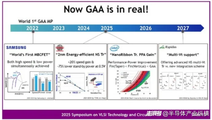 图 2:自 2002 年 GAA 论文发表以来 20 年的量产情况。来源:VLSI Symposium 2025,特别研讨会,YY Masuoka(三星)
