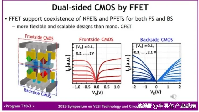 图 12. 在正面 (FS) 和背面 (BS) 分别形成 FET 。来源:VLSI Symposium 2025,T10-3,吴恒(北京大学),幻灯片来自“在 300 毫米晶圆上对倒装 FET(FFET)中的双面 N/P FET 进行首次实验演示,用于亚 1nm 节点的堆叠晶体管技术。”