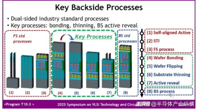 图 15 在 BS 上创建 PMOS,然后在 FS 上创建 NMOS 的过程[点击放大] 资料来源:VLSI 研讨会 2025 幻灯片,T10-3,吴恒(北京大学),“在 300 毫米晶圆上首次实验演示倒装场效应晶体管 (FFET) 中的双面 N/P 场效应晶体管,用于亚 1 纳米节点的堆叠晶体管技术。”