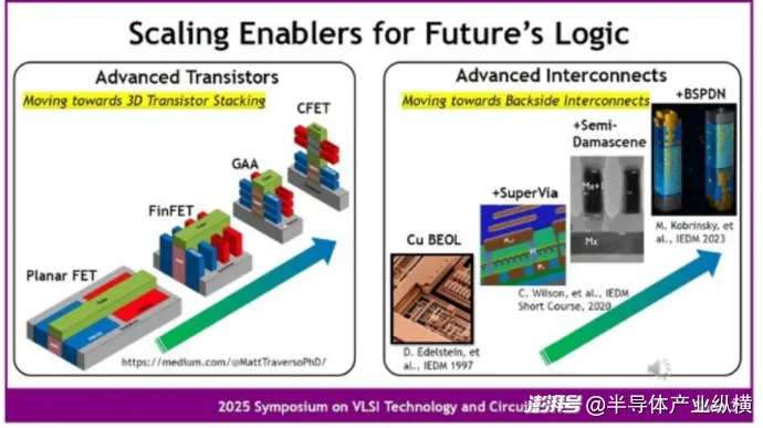 图 10 晶体管从 GAA 变为 CFET,布线至 BSPDN 。来源:VLSI Symposium 2025,T10-3,吴恒(北京大学),幻灯片来自“在 300 毫米晶圆上对倒装场效应晶体管 (FFET) 中的双面 N/P FET 进行首次实验演示,用于亚 1nm 节点的堆叠晶体管技术。”
