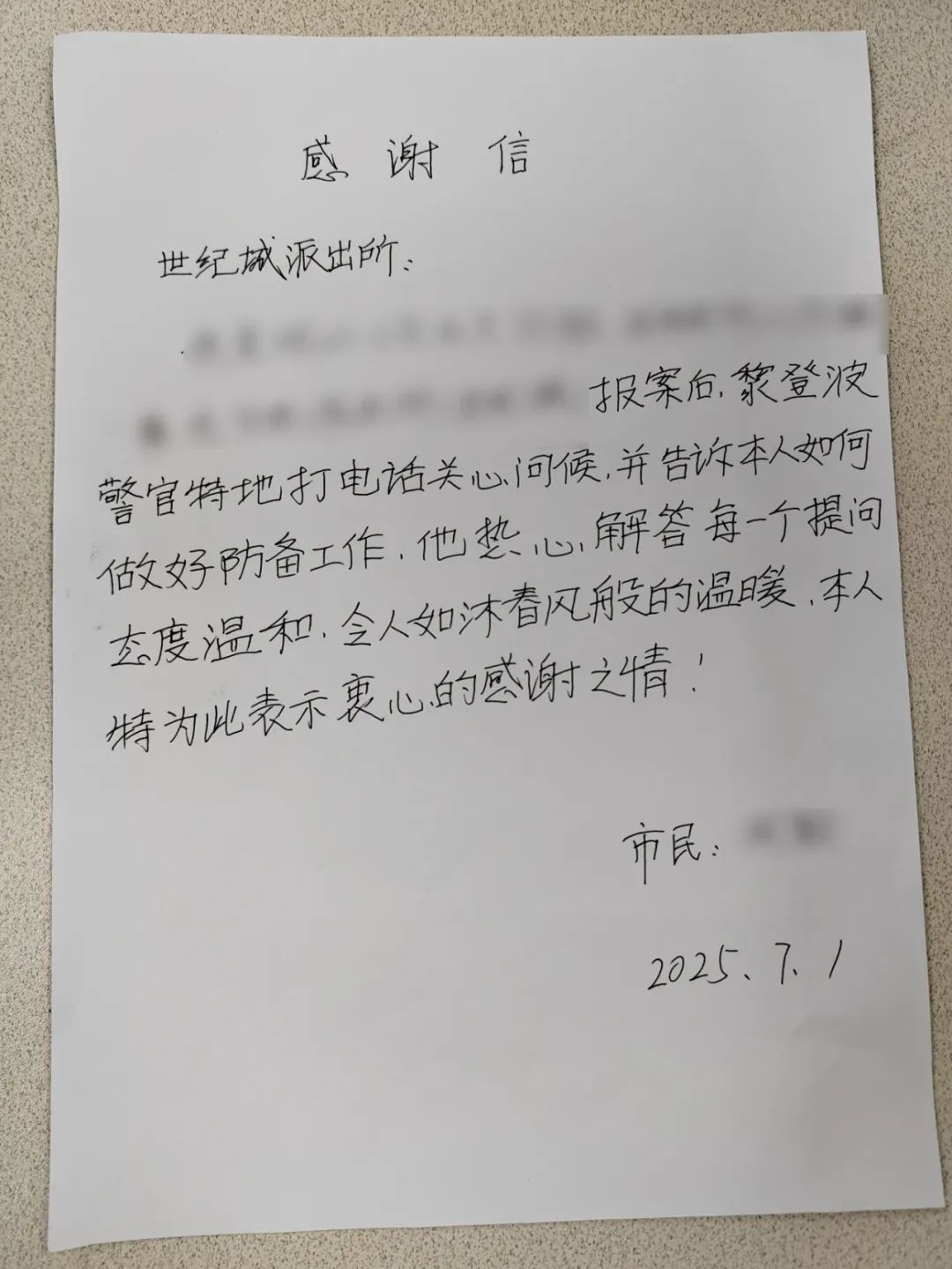 ——一封群众手写的感谢信