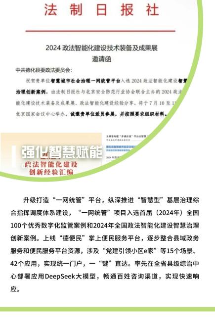 多年来,德化县深入推进更高水平的平安德化建设,已连续5轮获评福建省首批“平安县”,获评福建省2017-2020年度“平安建设示范县(市、区)”,获评第二批省级法治政府建设示范县。