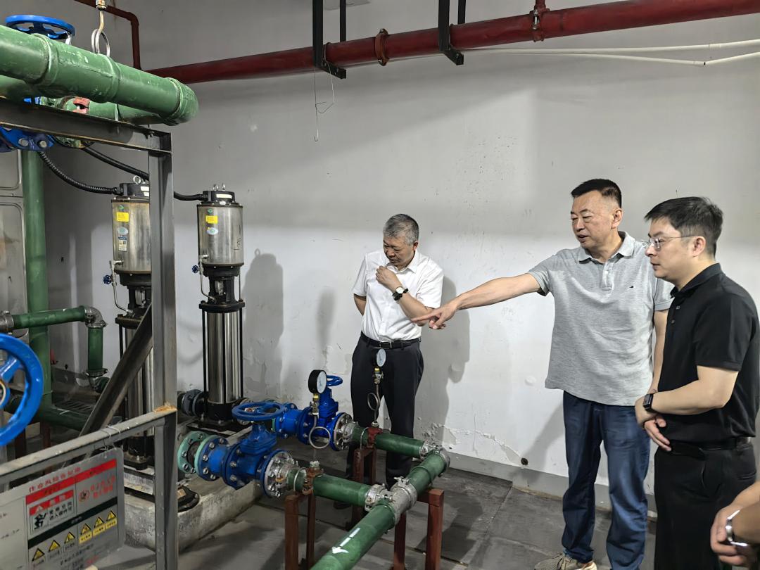 检查组首先前往蔷薇里小区开展检查,重点关注了水泵房的维护管理情况,详细检查了供水设备运转、维保记录及应急保障措施。检查组还对地下非机动车停车库开展了检查,排查消防设施配备、充电桩管理、疏散通道畅通情况以及是否存在电动车违规停放充电现象。