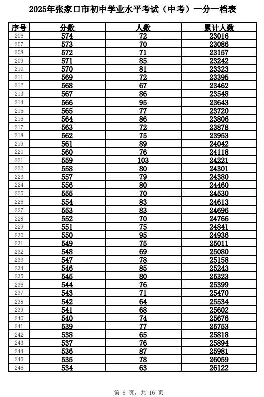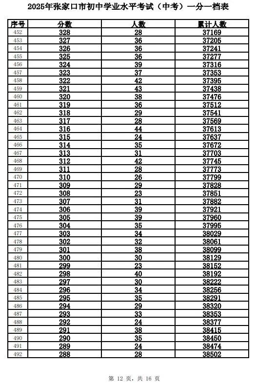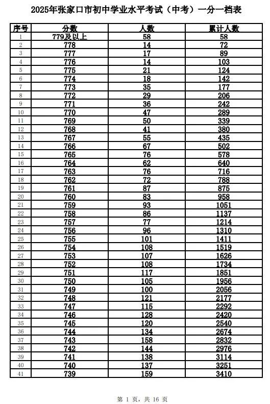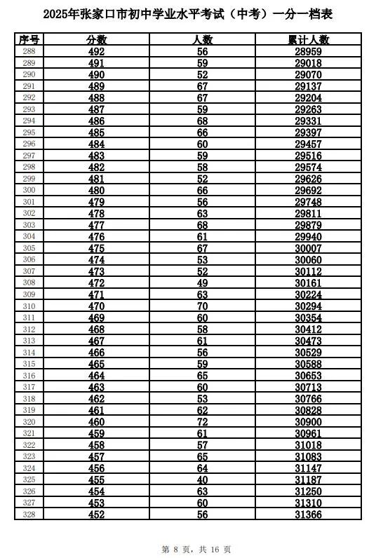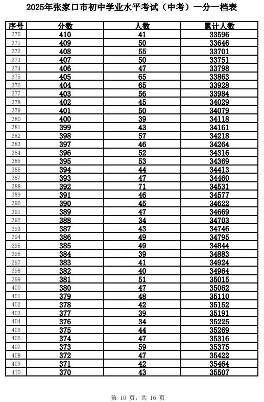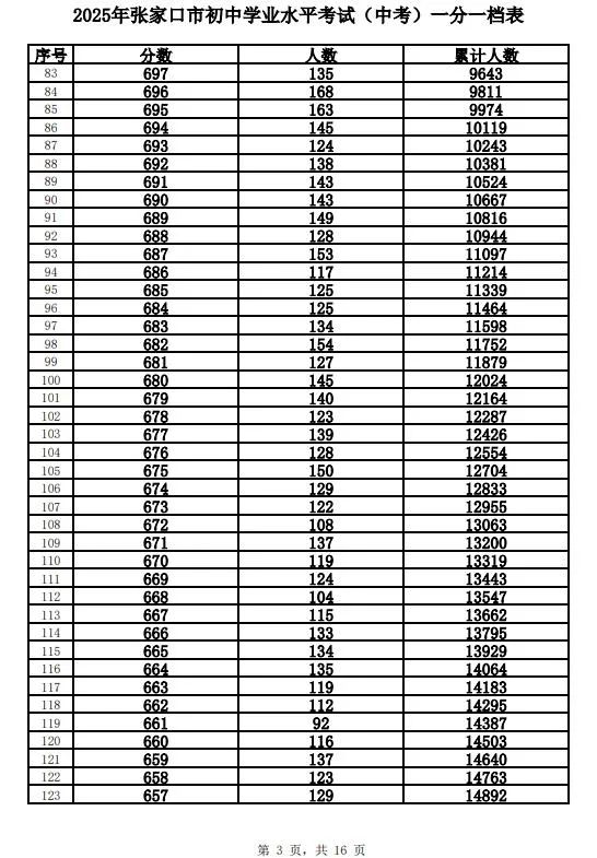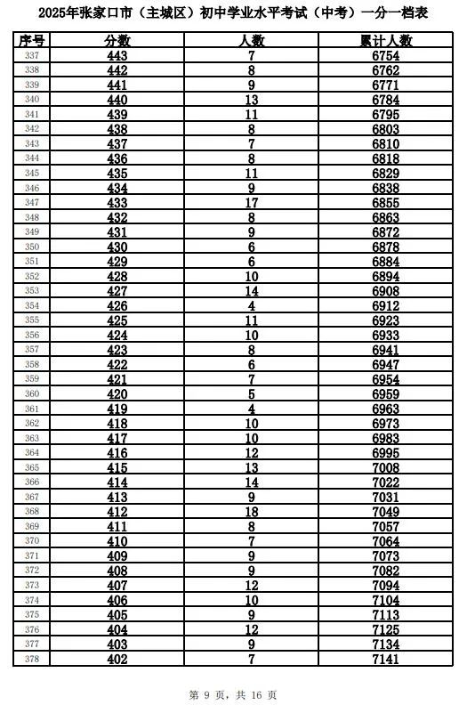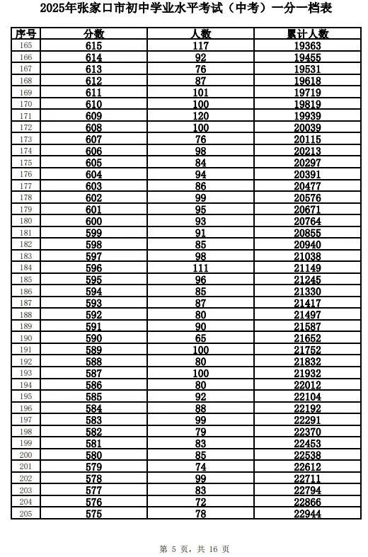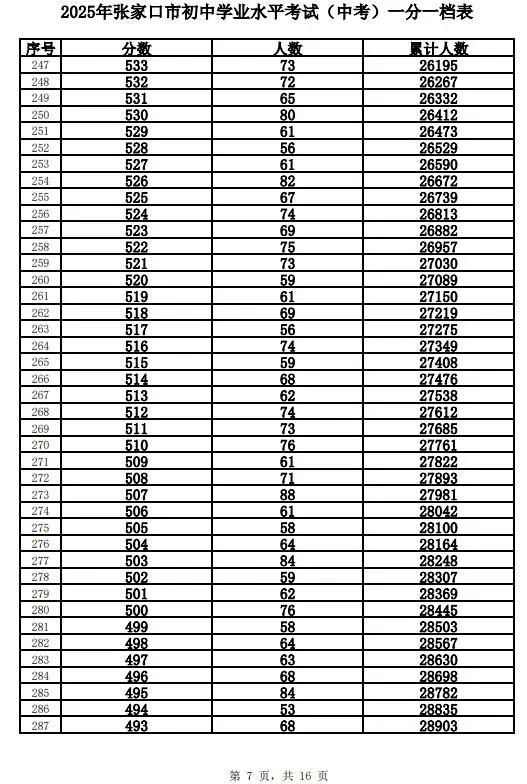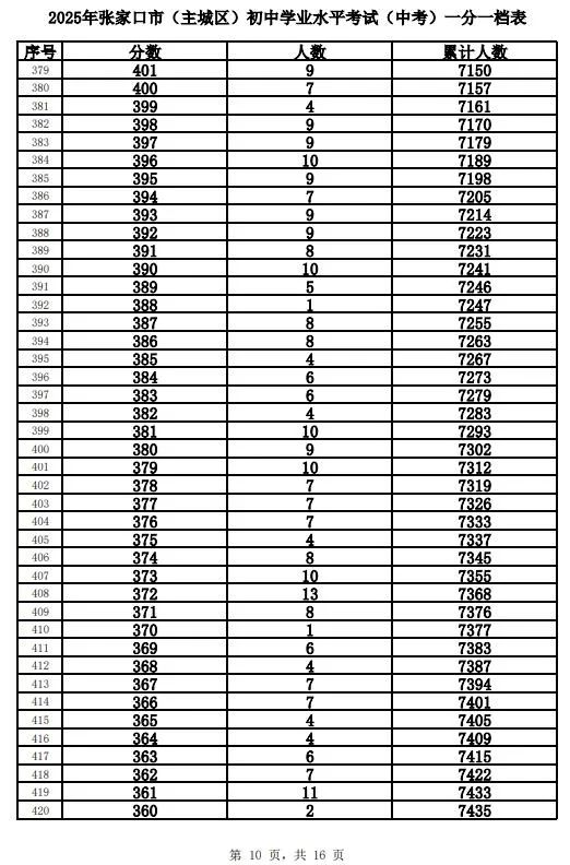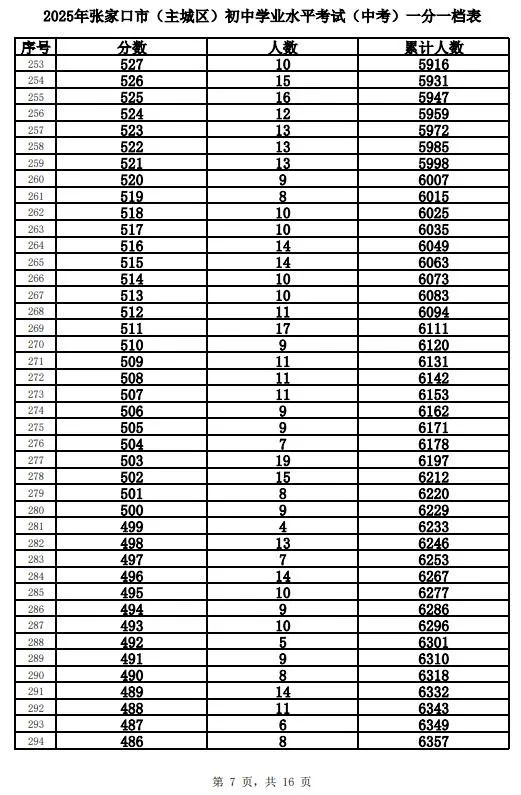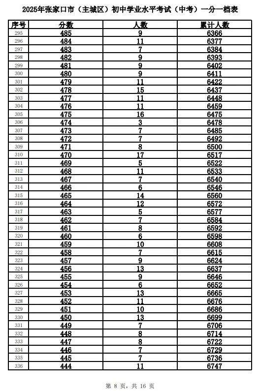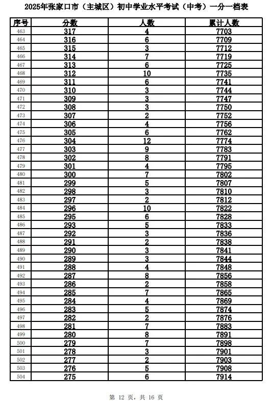 原标题:《2025年张家口市中考成绩以及中考录取控制分数线+中考一分一档表公布》