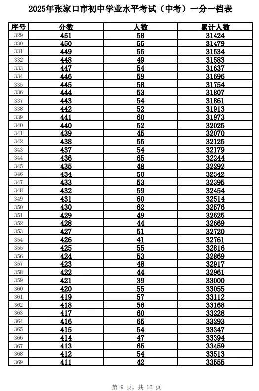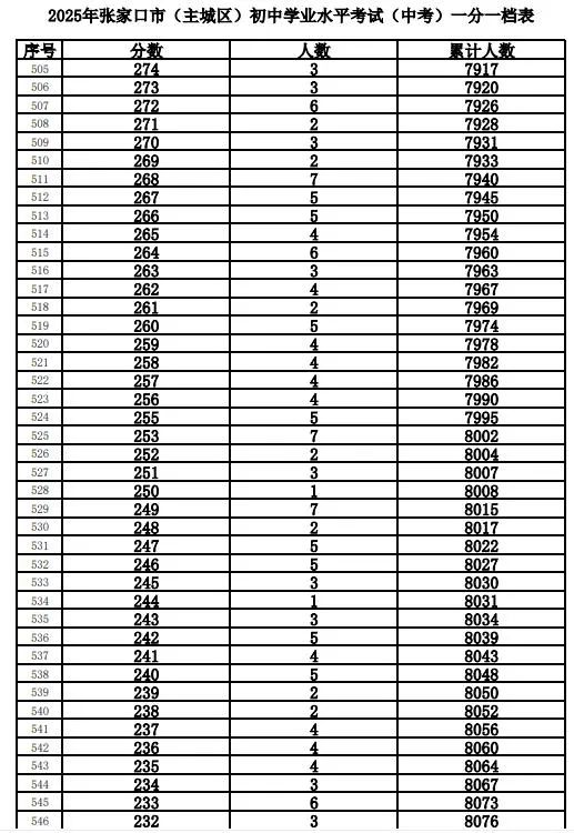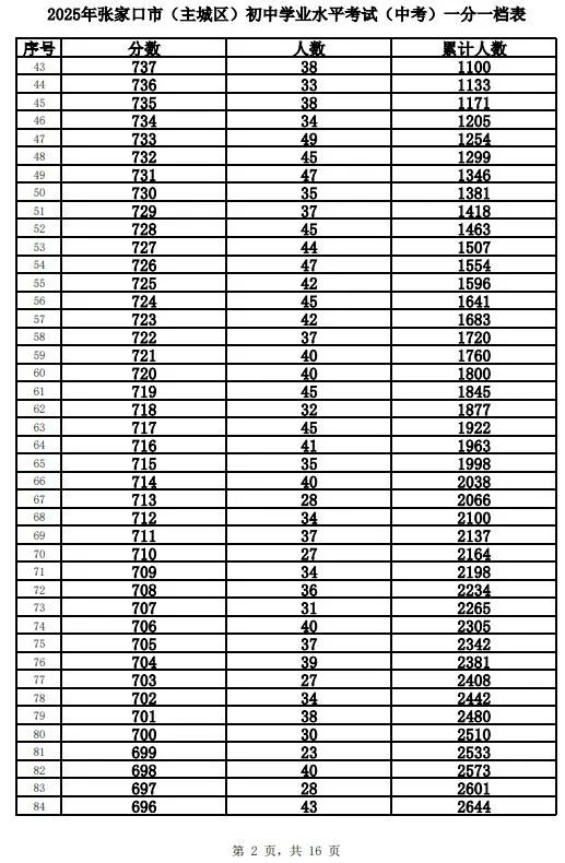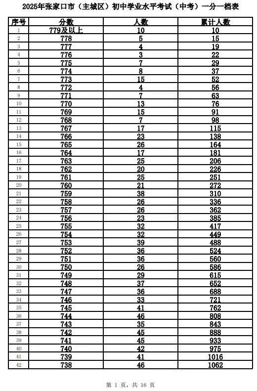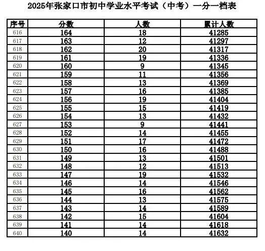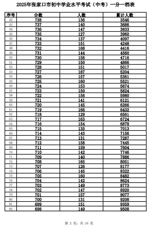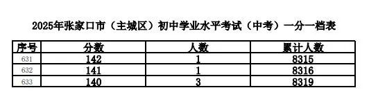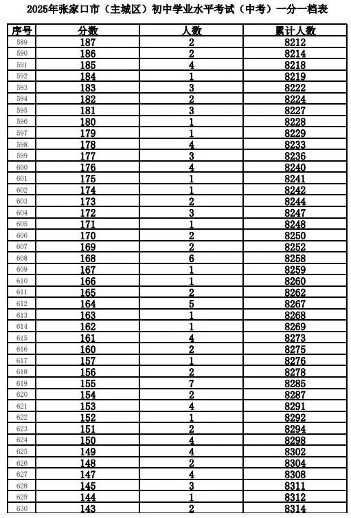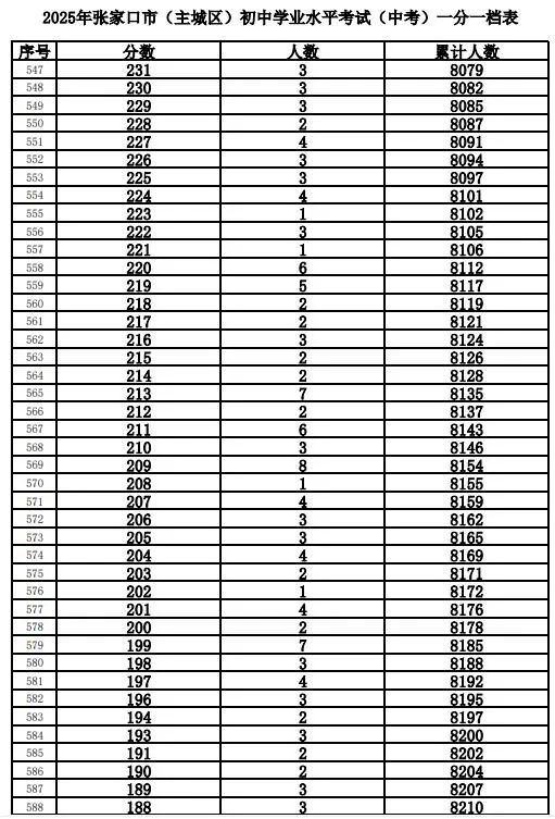 根据工作安排,现将我市的全市及主城区(包括市直、桥东区、桥西区、经开区、下花园区和崇礼区)2025年中考成绩一分一档表进行公布。