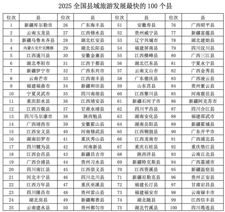 原标题:《《全国县域旅游研究报告2025》发布,综合实力百强县揭晓!有没有你家乡?》